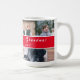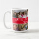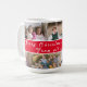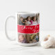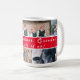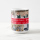 El diseño cuenta con espacio para seis fotos en frente, con fondo estampado de chapa de Santa, medias de Navidades y latas de dulces. La parte frontal central muestra el texto en cursiva blanca contra una parte posterior roja y rectangular. Un regalo perfecto "De todos nosotros".