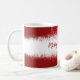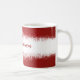 Esta taza festiva de vidrio esmerilado tiene copos de nieve blancos sobre un fondo rojo y un saludo de personalizable "Feliz Navidad" en el color rojo a juego.