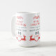 Diseño de tazas vacacionales. Feliz navidad y feliz año nuevo- diseño de texto retro en verde y rojo coral. Par reno con bayas de navidades lindos y año de personalizable.