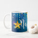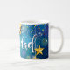 Coffee Mug - Feliz Navidad en fondo azul con estrellas de oro - Ver este diseño en placas, servilletas, tartas y más en mi tienda.