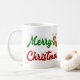 Mug con Feliz Navidad en texto 3D y un reno. Mug disponible en varios estilos y colores. Hace un gran regalo de Navidad para tomar bebidas calientes en noches frías durante las vacaciones.