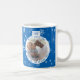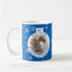 Feliz Navidad, Navidades de copos de nieve azul Ball Photo Mug. Diseño festivo lindo con una foto en la bola de Navidades con fondo azul de copo de nieve. Añade tu foto y personalizar el texto en la taza.
