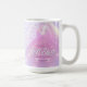 Diseño elegante y personalizado de taza de café para despedida de soltera con colores graduales hermosos desde lavanda hasta periwinkle y rosa con una bola de discoteca divertida, fuente retro glamorosa y fondo de luces de discoteca brillantes. Este diseño sofisticado y elegante se adapta fácilmente a cualquier cena especial y/o evento de baile. Busque ID928 para ver otros productos de esta colección de moda.