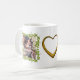 Filly y Foal en un marco de hiedra y un corazón dorado en medio de dos fotos en una taza blanca. Seguro que gustará a todos los amantes de los caballos. Los regalos perfectos para los que trabajan con caballos también.