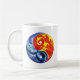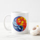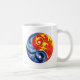 El diseño de fuego y hielo en forma de yin-yang representa la dualidad. Dibujado a mano con lápices de colores, estos colores calientes para el fuego y el azul fresco para la imagen del hielo se ven muy bien en cualquier objeto.