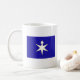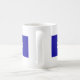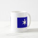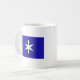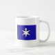 A mug with a design with the flag of Chiba Prefecture in Japan (千葉県, Chiba-ken), a blue flag with a white and yellow symbol
