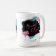 ¡Celebra un fin de semana de despedida de soltera 'Flocking Fantastic'! Flamencos rosados, hojas de palmera tropicales y flores con fondos degradados, desde rosa intenso hasta turquesa atrevido, están acentuados por pinceladas y formas geométricas arqueadas en negro sólido. Este diseño de taza de café colorido utiliza un lenguaje un poco "colorido" como una forma única de presentar a la novia del equipo, el 'Rebaño Nupcial'. Busque ID930 para ver todos los productos coordinados en esta colección.