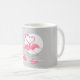 Un par de flamencos rosas con cuello curvado forman un corazón parado en el mar en una playa iluminada por la luna. Un diseño elegante y romántico con un toque retro, en tonos rosa, gris y blanco con un fondo que cambia de color. Un diseño de personalizable para que puedas personalizar con tu propio texto, imágenes e ideas. Imagen original de arte digital.