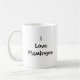 Foto original de primer plano de una floración rosa que esconde su pico bajo sus plumas. La foto está de un lado de la taza con las palabras "Amo a los flamencos" del otro. El texto es personalizable y se puede cambiar o quitar para adaptarlo a sus necesidades.