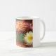 Flor de dahlia (planta) rojo macro y amarillo con brote sobre el agua con reflexión, efecto digital