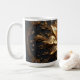 Juego de centro de flores doradas opulentas dentro de un marco circular dorado sobre un fondo negro, que emana lujo, elegancia y decoración atemporal adecuada para interiores sofisticados y marca de alta gama.