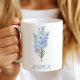 Las tazas de café personalizadas son regalos fantásticos para ti o para otros. La flor del mes es un gran regalo de cumpleaños o para damas de honor. La flor de julio es la hermosa delphinium azul. Para personalizar tu taza de café, simplemente haz clic en "Personaliza este diseño", ingresa el nombre y Zazzle se encargará del resto.