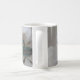 Esta taza muestra una fotografía de una especie británica de color verde azulado de escarabajo florido sentada en una flor blanca de Carnación. La foto fue tomada usando macrofotografía para mostrar el detalle y color de esta hermosa especie de escarabajo. El diseño se muestra en una taza de café blanca básica, pero también está disponible en otros colores y estilos de tazas.
