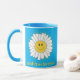 Esta taza de café alegre presenta una flor sonriente, simbolizando positividad y felicidad. El eslogan "Rompe con la rutina" anima a los espectadores a abrazar la alegría y encontrar ligereza en la vida.