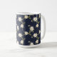 Taza De Café Floral blanca azul marina