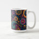 Floral Paisley Pattern with pink yellow and blue paisley pattern flowers on a dark blue background coffee mug.