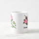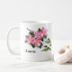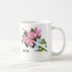 Pájaros colibríes con trompetas de rubí que ondean con flores rosadas en la rama del árbol