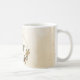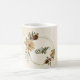 Taza de café única con flores románticas de terracota rústica y hojas verdes.