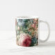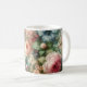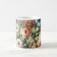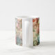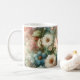 Bonito acuarela taza de café floral con flores azules, rosas y blancas.