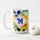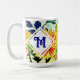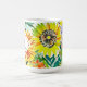 Bonito rosa, amarillo y morado acuarela ai flores de arte tazón de café floral. Añadir inicial en el área personalizada.