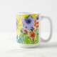 Bonito rosa, amarillo y morado acuarela ai flores de arte tazón de café floral.