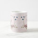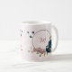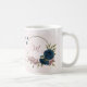 Hermosa taza de café romántica con flores rosadas y azul marino y algunas hojas bonitas .