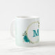 Hermosa taza de café con flores turquesa y azul claro y hojas verdes PARA MÁS PRODUCTOS COINCIDENTES pinchar en la colección de arriba o contactarme