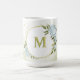 Taza De Café flores azules y hojas verdes románticas botánicas