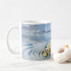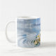 Coloca tus propios nombres, textos, mensajes o citas en una romántica deriva de flores blancas que se mueven sobre el océano. Tacup o tazón de café.