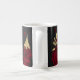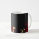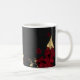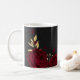 Flores burdeos elegantes con algunas hojas de oro románticas sobre el fondo negro tazón café