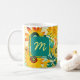Flores de arte folclórico amarillo y turquesa taza de café. Agregar iniciales en el área personalizada.