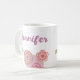 Flores de flores japonesas adorables y preciosas flores de cerezo en tonos pastel rosa y violeta. Dale un toque de personalidad al poner tu nombre en la taza en texto de escritura morado. Dale a ti mismo, a tus amigos o a tu familia una taza que amarán y disfrutarán.