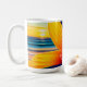 La taza de café colorida presenta un atrevido y luminoso atardecer tropical floral y de playa | IA creó arte digital de fantasía surrealista.