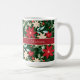 Poinsettias, bayas y hojas de color rojo y marfil, de diseño y personalizado, sobre un fondo verde oscuro, estas hermosas tazas son perfectas para su propia decoración o como regalo, regalo de la anfitriona, Santa Claus secreto y más. Plata de sirvientes, platos, placas de papel, servilletas de tela y papel, manteles, corredor de mesa, trivetas y más en nuestra tienda.