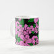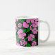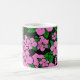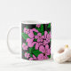 El diseño de flores de Hibiscus en rosa por Rockett Graphics. El color de fondo de la taza es el personalizable.
