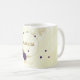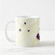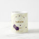 Hermosas flores reales moradas y hojas de oro sobre el fondo de mármol tazón de café