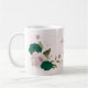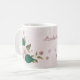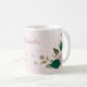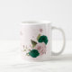 Hermosa taza de café romántica con flores verdes esmeralda y rosadas y algunas hojas. PARA VER MÁS PRODUCTOS COINCIDENTES, haga clic en la colección anterior o contácteme