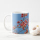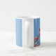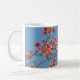 Fotografía de alta definición de flores rosas impresas en la taza. Un cielo azul vibrante. botón personalizar a la izquierda para que pueda agregar texto como verso, nombre o dama de honor - su elección.