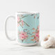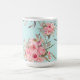 Las magníficas flores de color rosa rosado de las acuarelas están floreciendo sobre un fondo azul claro.