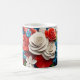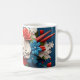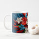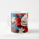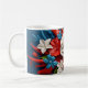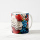 El diseño floreciente de las flores en un diseño artístico estilizado. La composición muestra una mezcla de colores vivos, predominantemente rojo, blanco y azul