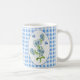 Taza De Café Flores y mariposas de Plumbago en el Gingham azul