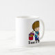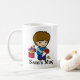 Un chico lindo en un delantal con un ramo de flores y flores en el fondo. Para el florista o el agricultor. Personaliza con tu nombre.