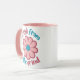 Una taza de café que presenta una flor de margarita rosa, con la frase "Rompe con la rutina" centrada alrededor de la imagen. El diseño sugiere una escapada pacífica y edificante de los estreses diarios, simbolizando esperanza, inocencia y positividad.