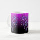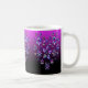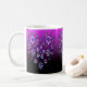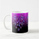 Hermosas flores pequeñas de diferentes tamaños, formas y colores que varían en tonos azules y violetas sobre un fondo degradado morado y negro.