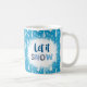 Taza De Café Fondo azul con árboles y "Dejen que nieve"