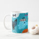 Taza De Café Fondo Azul, Patrón De Perro Jugador.