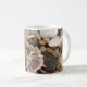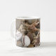 Fotografía de pequeñas conchas y piedras lisas en una pila sobre un fondo blanco. Añade tu propio texto a este fondo neutro de conchas y guijarros.