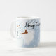 Taza De Café Fondo gris Purpurinoso con copos de nieve y nieve