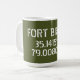 El tazón de café con coordenadas de mapa de latitud y longitud para Fort Bragg, cerca de Fayetteville, Carolina del Norte. Tipo de letra blanca del estilo de la galería de símbolos en el fondo verde del ejército.