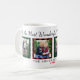 Personalice este festival "Es la época más maravillosa del año" café o tazas calientes de cacao con cuatro (4) fotos favoritas de su familia. Los fondos con motivos rojos, verdes y negros de búfalo envueltos enmarcan las fotos. Personalice con texto personalizado sus nombres / apellido y el año. Consejo de fotos: recortar tus fotos a un formato cuadrado antes de subir. Crédito de las fotos: Two Fish Photography www.twofishphoto.com
